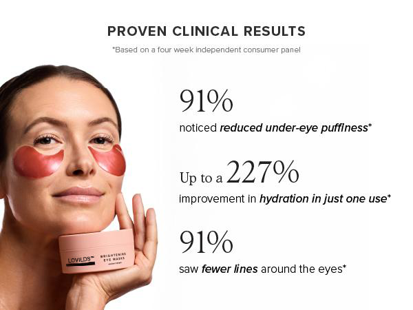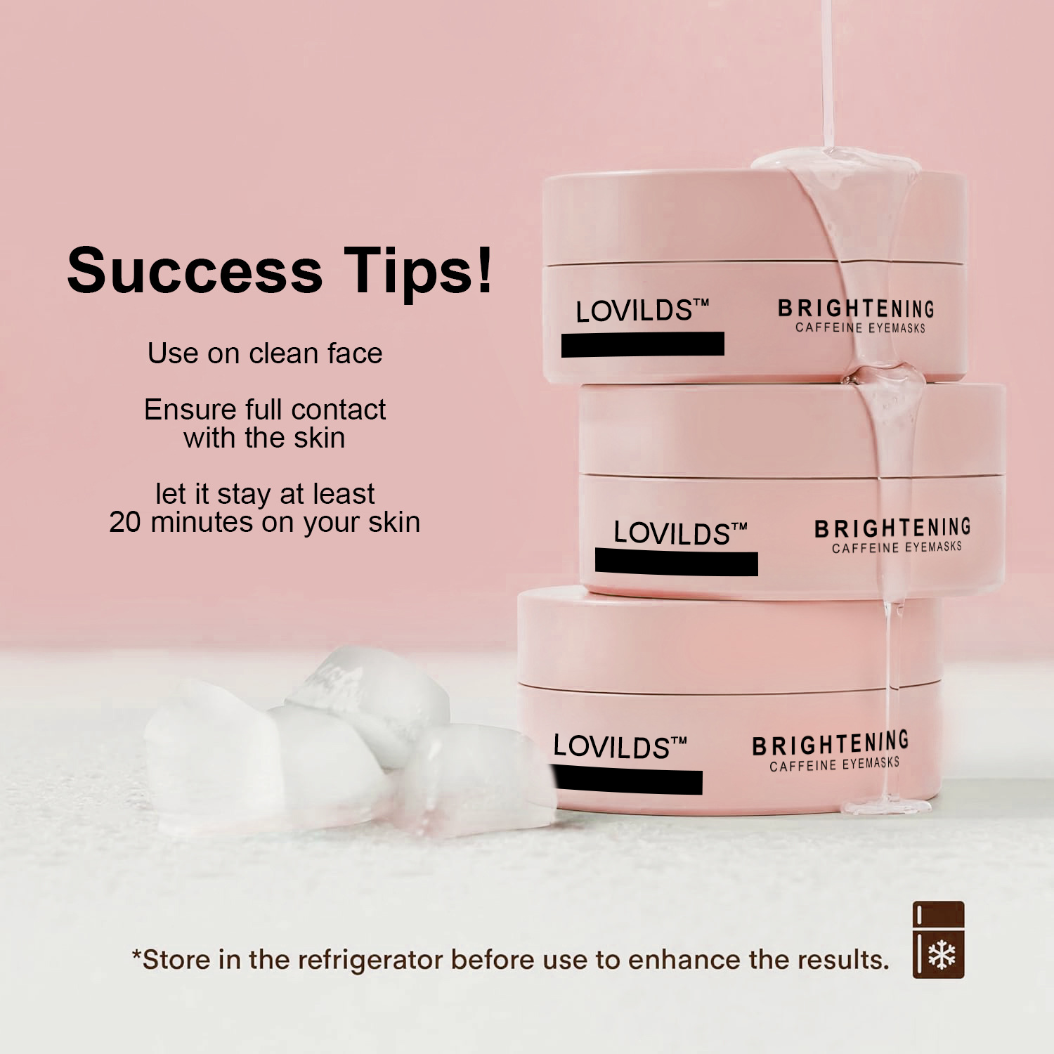 “LOVILDS™ Brightening Eye Masks combine dermatologist-grade peptides, niacinamide, and botanical extracts to effectively target dark circles, puffiness, and fine lines.